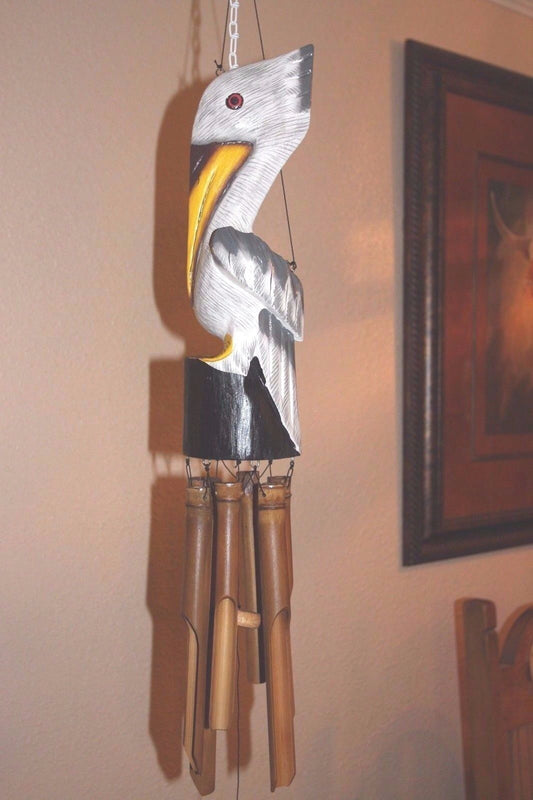 (1) Collectible Pelican Wind Chime Gift for him, Hand Carved Wood Pelican