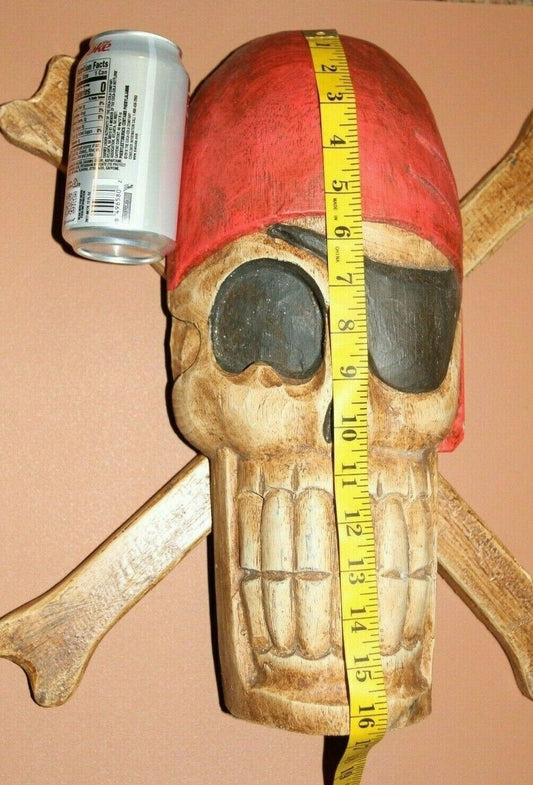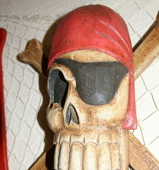 Wood Jolly Roger Wall Hanging, Pirate Man Cave Decor, 15" high, 2 of FGS-01
