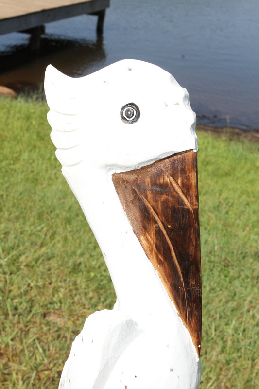 Wood Pelican Statuette Hand Carved- 19" tall -Beach - Tki Decor -Yard Art