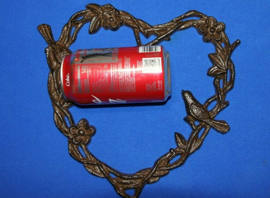 Wild Birds Flowers Vintage Look Cast Iron Heart shaped plaque, H-32b