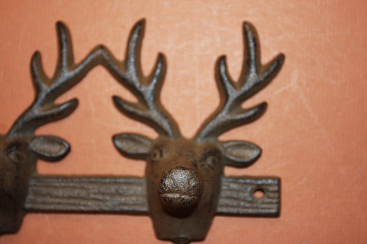 (1), Rustic Deer Wall hook, Deer Coat Hat Hook, Cast Iron, 9 3/4", Deer, W-61