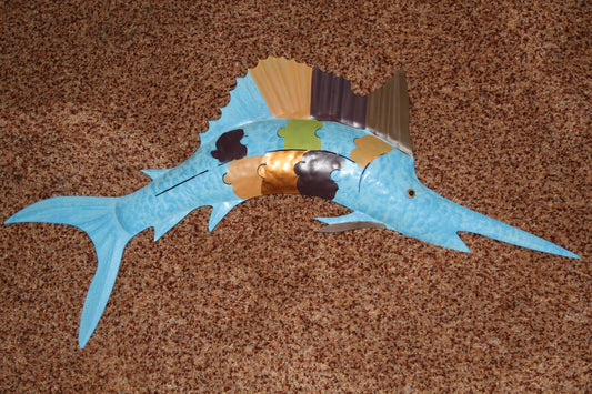 (1) Metal Swordfish Wall Decor Vibrant Enameled Colors, 31 inch