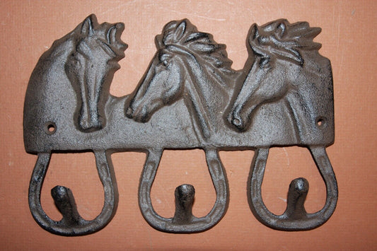 (1) Rustic Wild Horse Cast Iron Decor Christmas Gift, Coat Hat Wall Hooks, W-42
