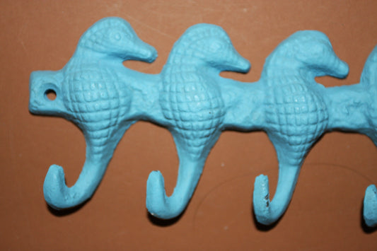 (1), Aqua Color Seahorse Key Hook, Ocean Theme Key Rack Cast Iron, 5 hooks