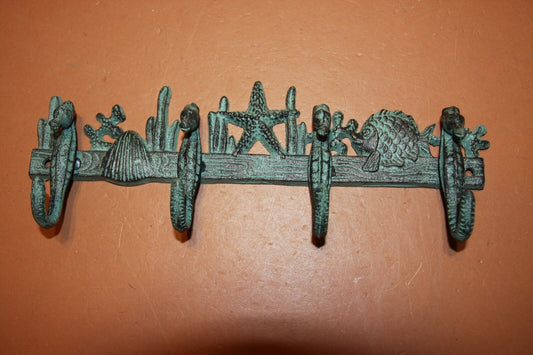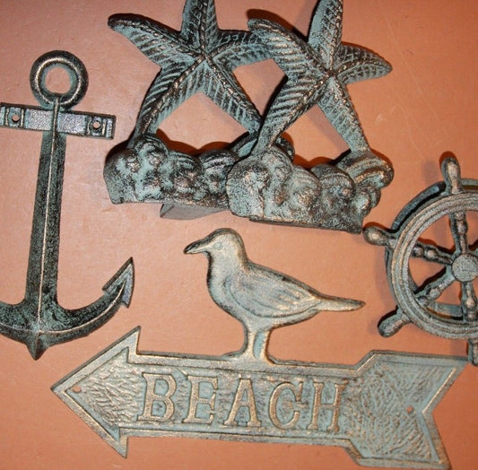(5) Beach Lover Christmas Gift Set Ocean Theme Wall Hooks Rack Set Cast Iron