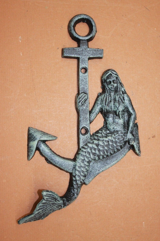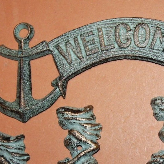 (5) Antique-look Maritime Welcome Plaque Mermaid Wall Hook Cast Iron Set 5 pcs