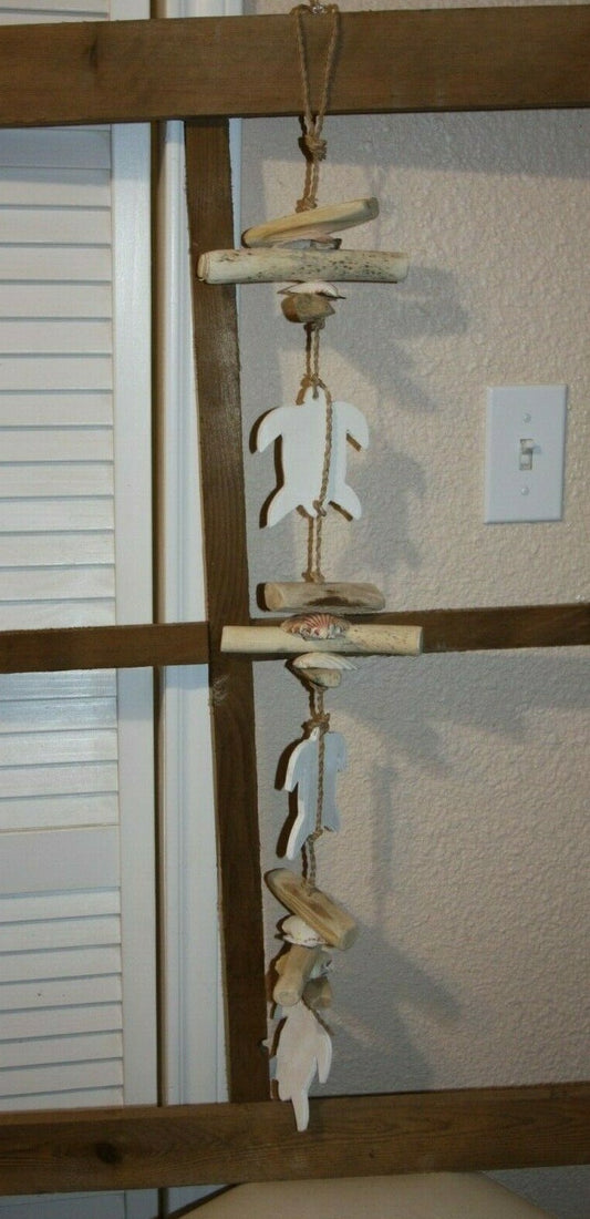 (4) Set of 4 Sea Turtle Driftwood Garland Handmade 32 inches, Turtle Time G-14