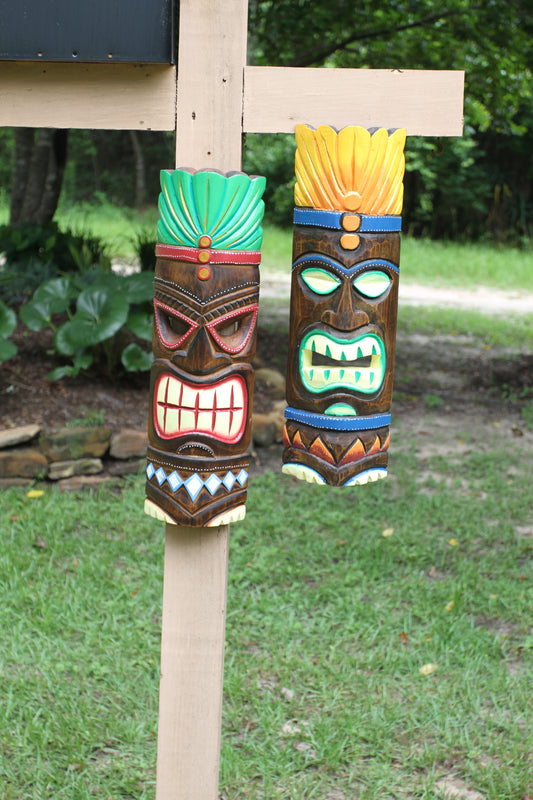 TIKI MASKS, Porch Decor, Garden Decor, All Occasion Gifts, Tropical Home Decor, Green Top Tiki Mask, BH-TM-2