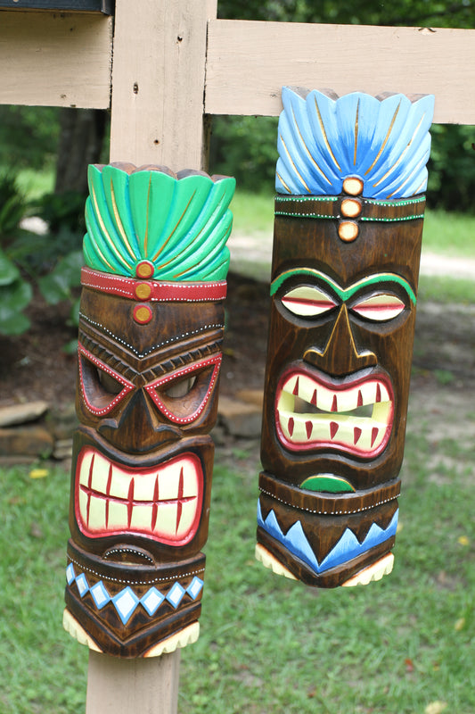TIKI MASKS, Decorative Wood Masks, Tropical Lanai Wall Hangings, Beach Wedding Decor, All Occasion Gifts BH-TM-1,2