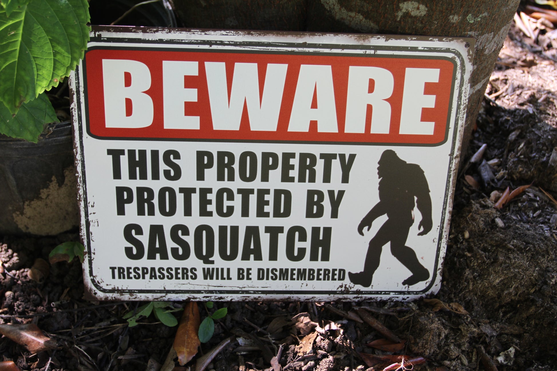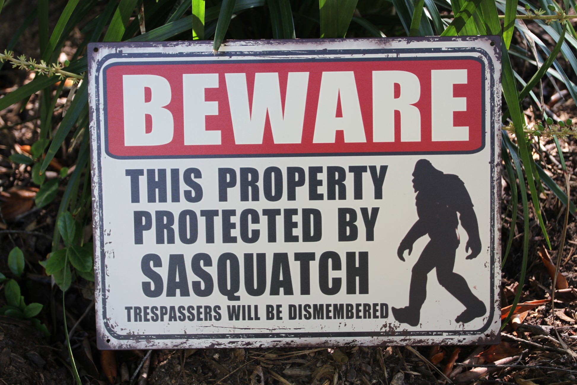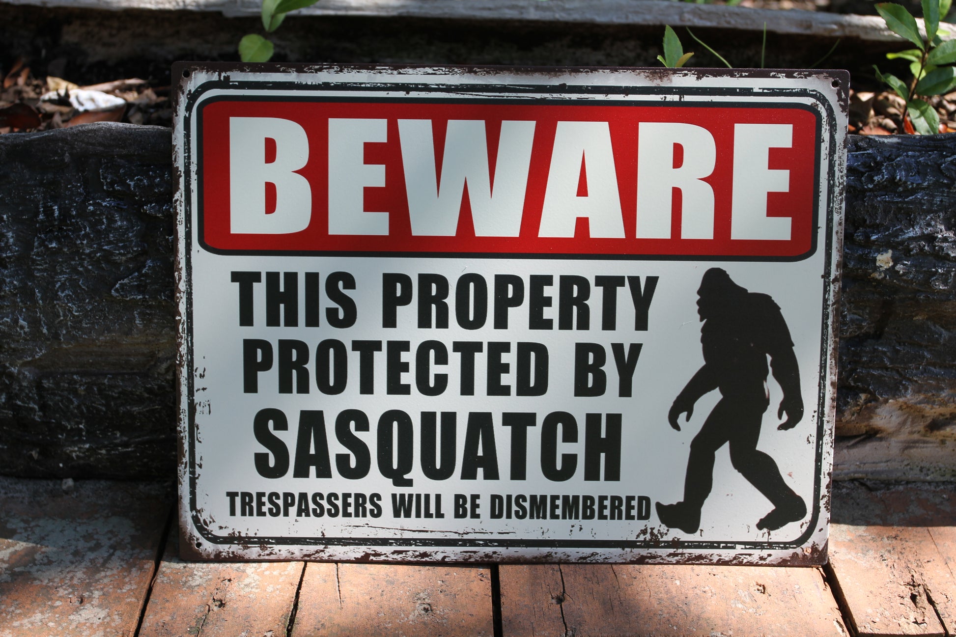 BEWARE OF BIGFOOT SIGN, Fence Sign, Wall Sign, Bigfoot Gift, Bigfoot Collection, Mythical Beast, BF-2
